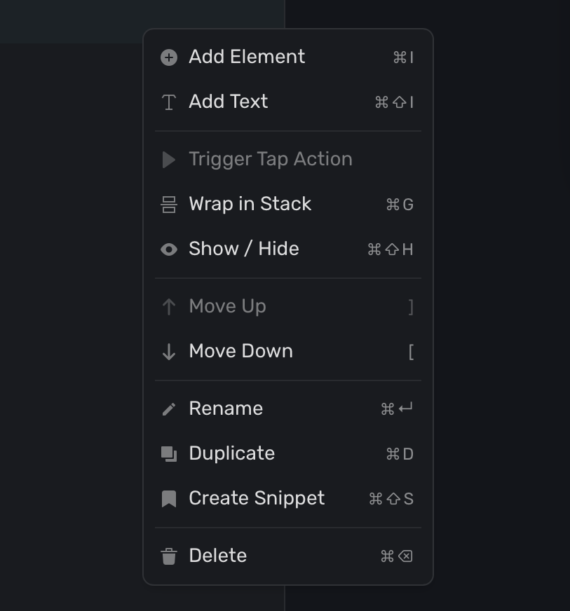 You can also right-click on a component to open a context menu. It contains nearly all of the editing options you'll find in the component editor. In addition, this is a great way to see and learn the available keyboard shortcuts: